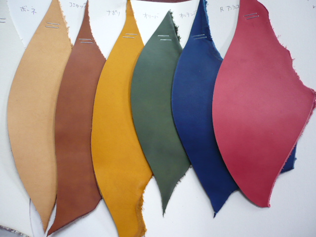 新しい革のお知らせです。今までとはまったく趣の異なる革をラインナップに加えてみました。イタリアはバタラッシィ社の“リスシオ”という革です。イタリア古来のなめし方法であるバケッタ製法で有名なタンナーですが、このリスシオもバケッタで手間暇かけてつくられています。履きこむほどにいい味のでる、趣深い靴がつくれそうです。色バリも10数色と非常に豊富で、つくり手としてもかなり興味をそそられます。