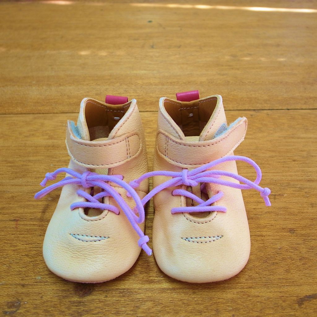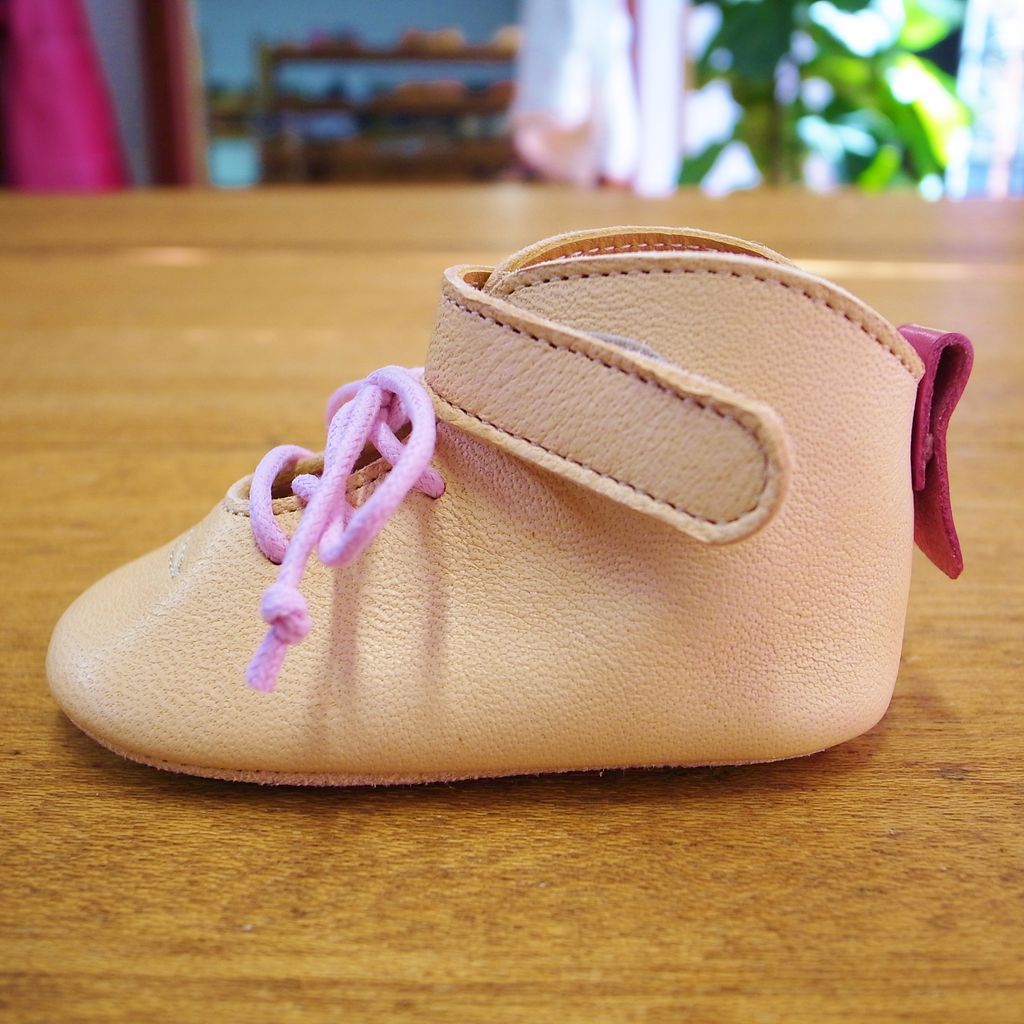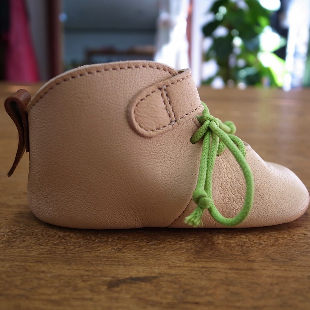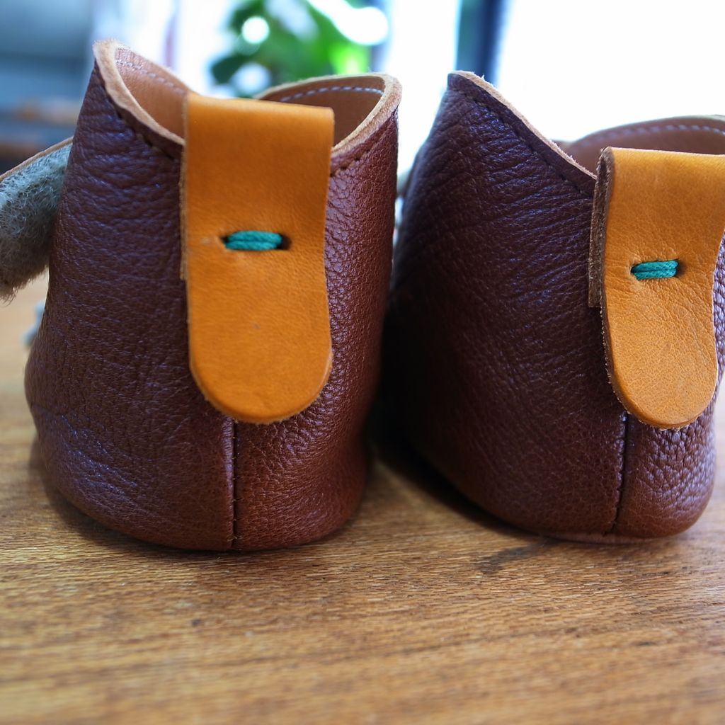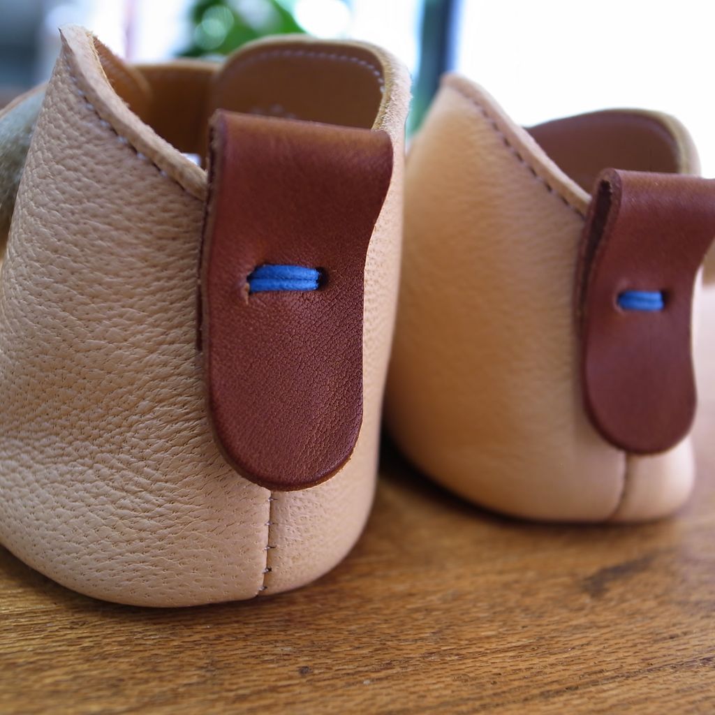 このこぐつ、当初は既製のみでの販売を考えていました。ですが、赤ちゃんにとっても贈る方にとっても特別な1足、せっかくなら革の色にステッチの色、紐の色... いろいろ選んでもらおう!! ということになりました。