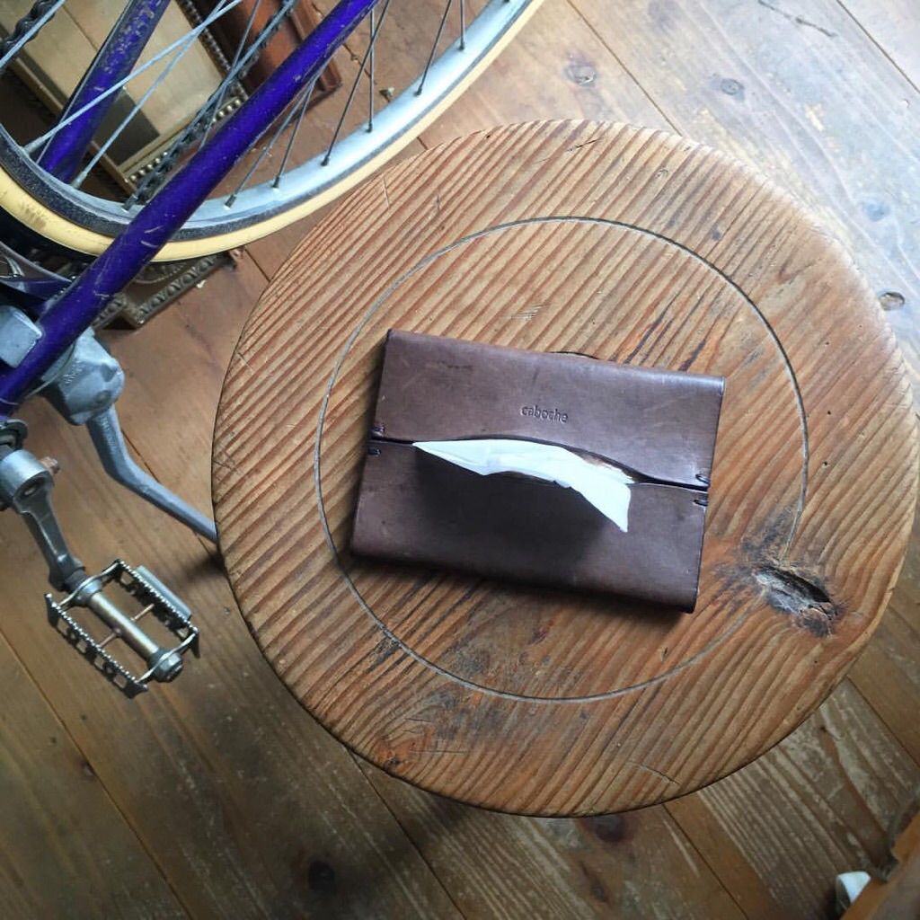 今回もそんな、ああでもないこうでもないのなかから、ほどよいラインとフォルムのティッシュケースができあがりました。ティッシュが入っているビニールの柄が取りだし口からちらっと見えるのも、これはこれでありかな〜と思っています。カバンにポイっといれてあちこち連れていっていただけると嬉しいです。